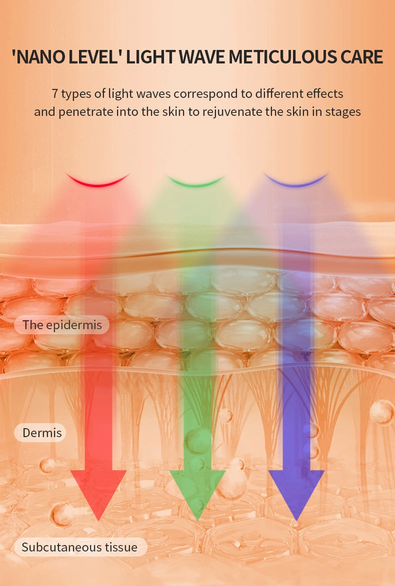 1.Red light(630nm):Improve skin, rejuvenate,dilute wrinkle,and deep repair