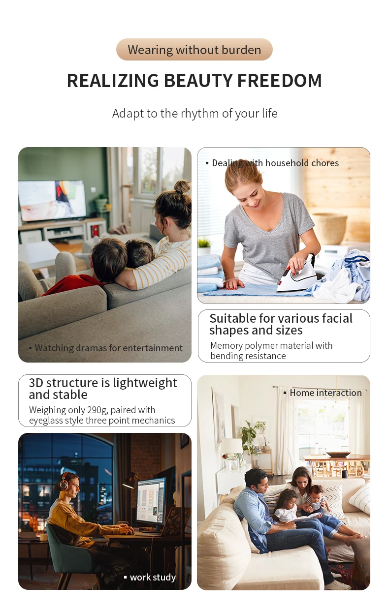 5.Light weight, 290g, no burden on face, comfortable and painless.Use it, you can stand, sit or lie down.